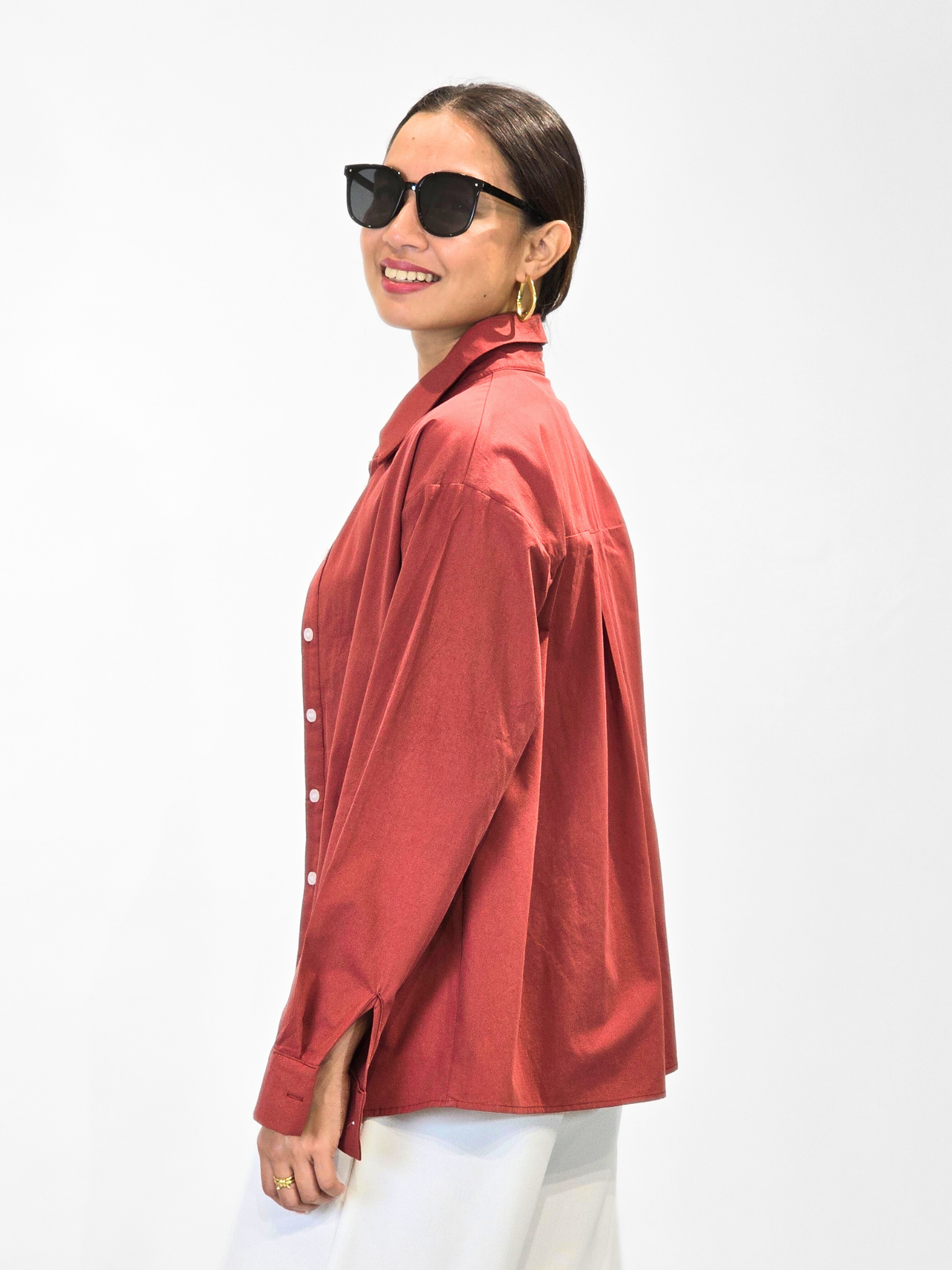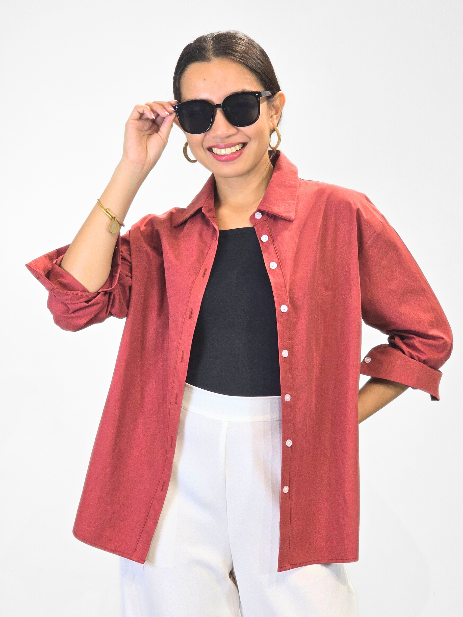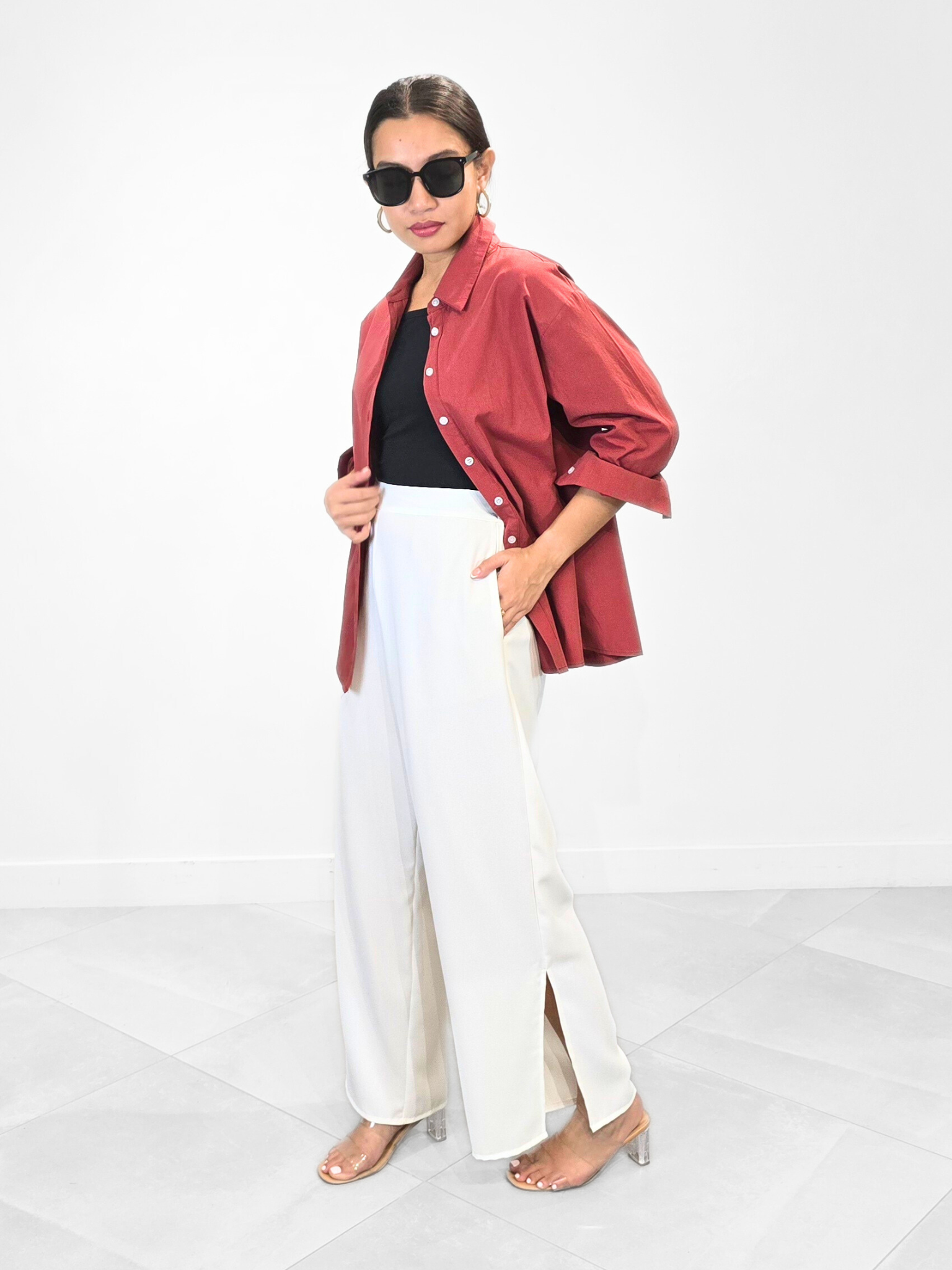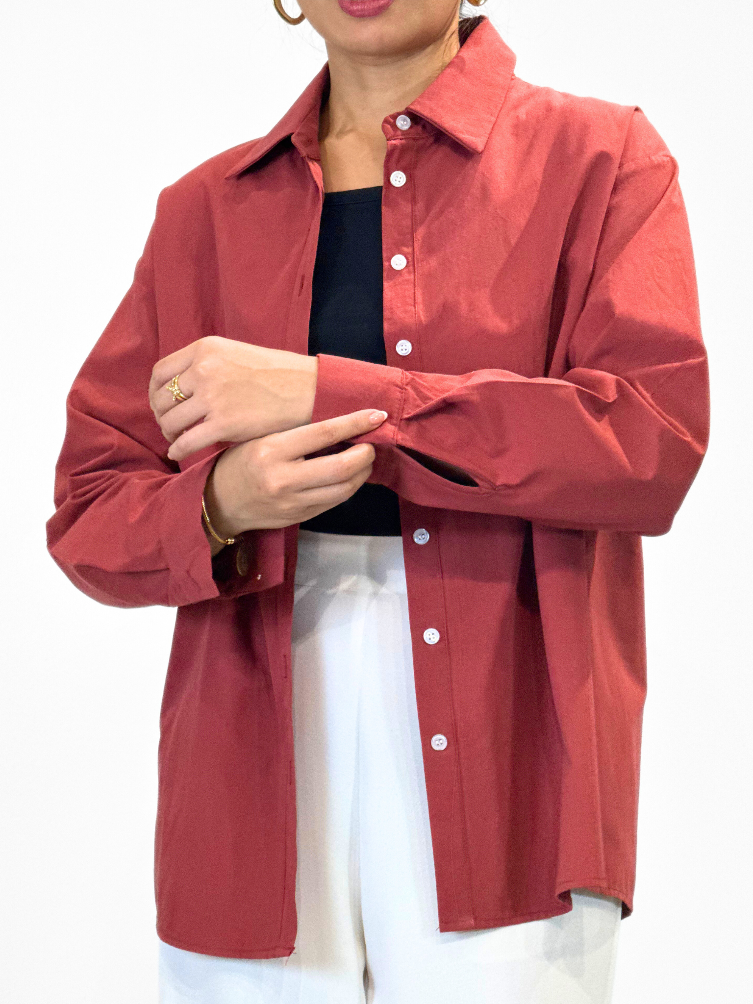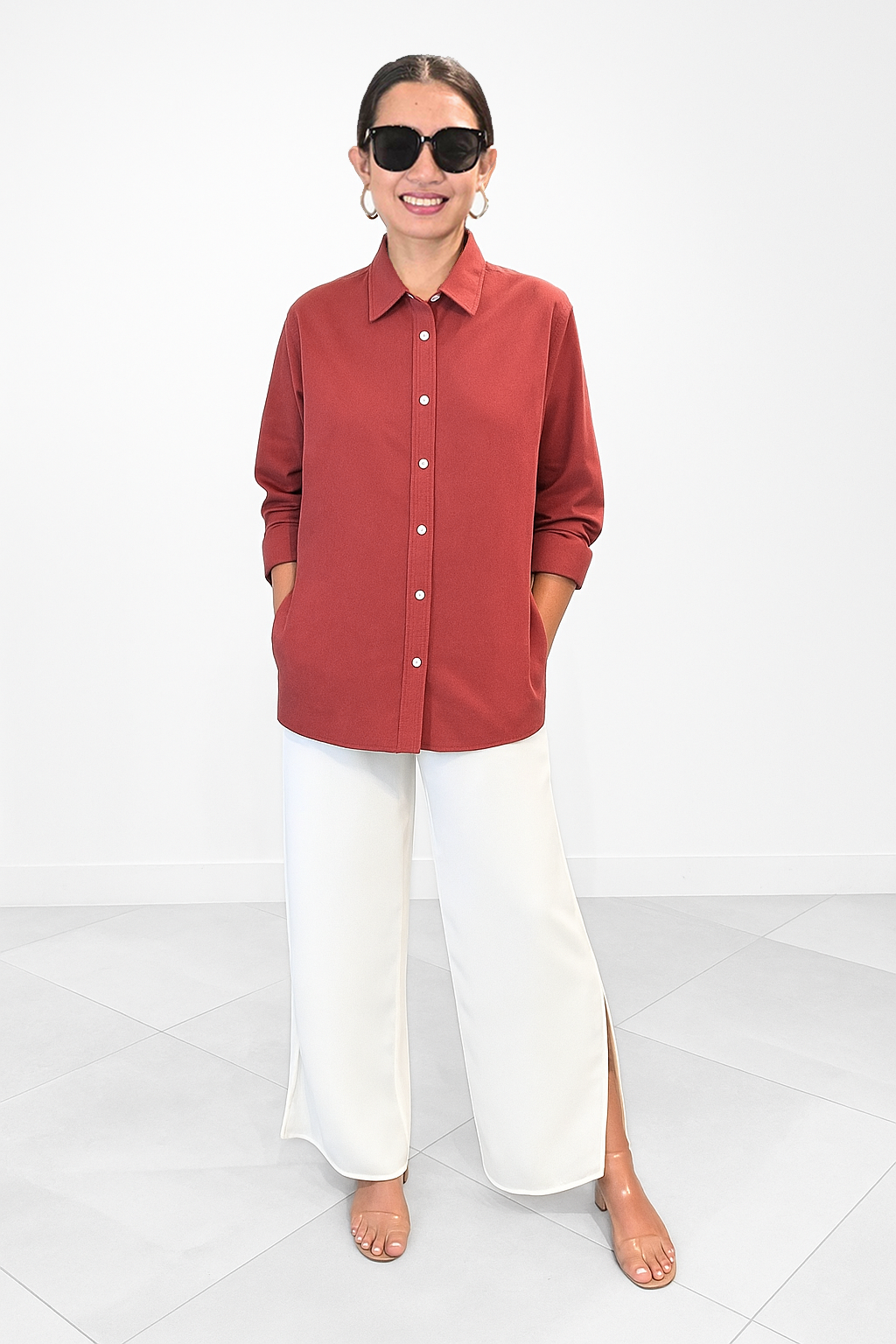 Effortlessly chic BROOKLYN button-down shirt is a versatile staple for any wardrobe. Crafted from a lightweight, breathable fabric, it drapes beautifully for a relaxed and loose fit. This shirt can be styled in countless ways: buttoned up for a polished feel, left open over a simple tank top for a laid-back vibe, or tucked in to define your waist. Pair it with trousers, jeans, or a skirt to create a look that is both comfortable and stylish.