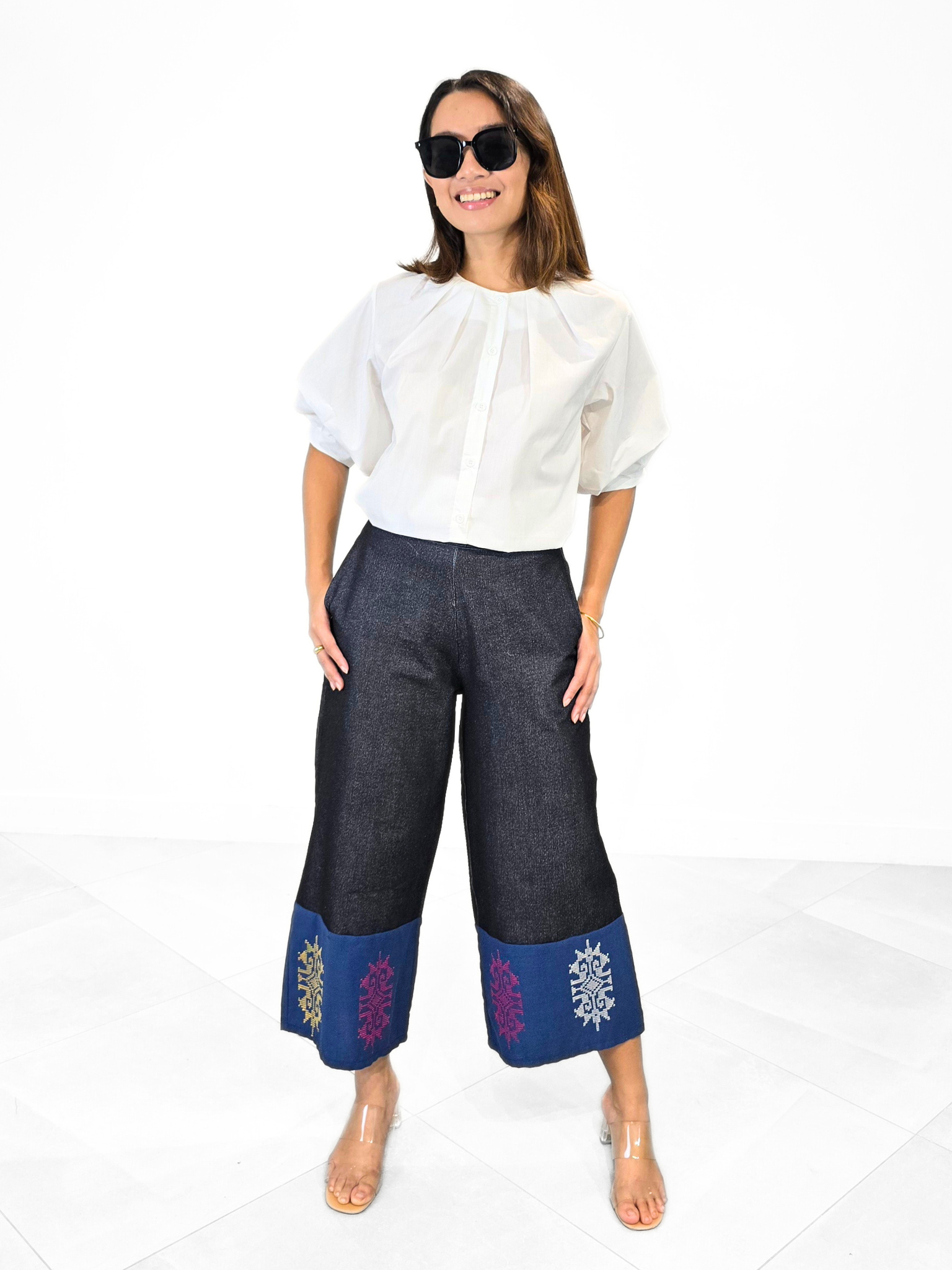 CAMILE is a crisp and charming white top that combines classic elegance with playful details. It has a beautiful, clean white fabric, which appears to be a lightweight cotton or linen blend.