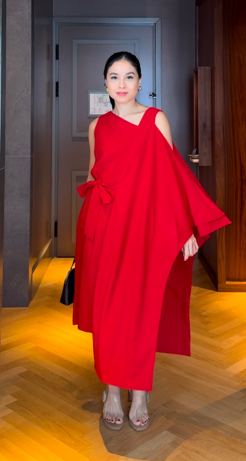 KUL crafts sophistication with an edge in CHIARA dress. Featuring an asymmetric neckline and side accent, this piece is a modern twist from your usual dress. Perfect for day to night and evening events, paired elegantly with our transparent heels.