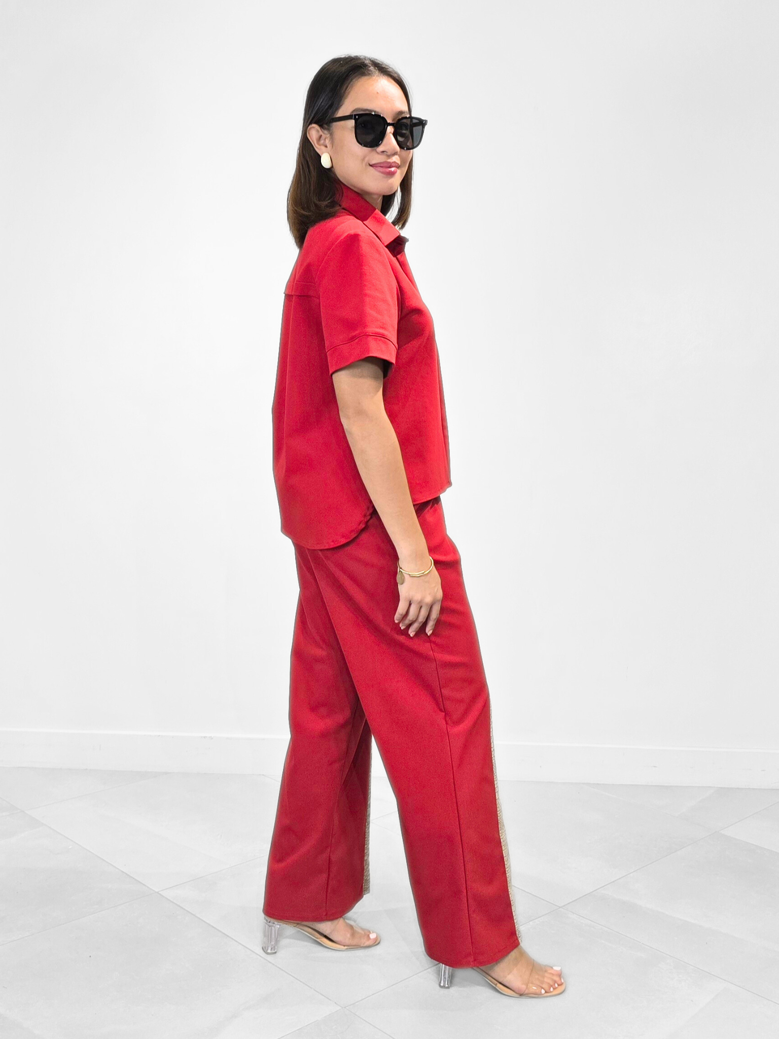 Not your ordinary polo- casted in a red palette, GIA top designed for chic versatility. It’s time to channel a contemporary attitude into your daily edits.