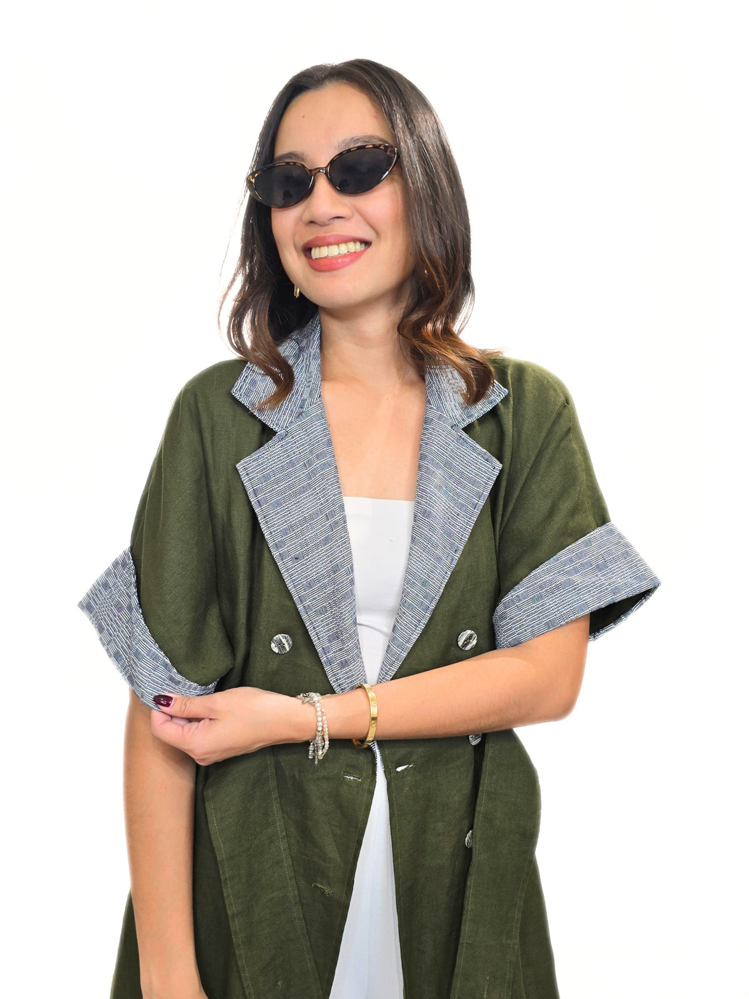 Let the dress do the heavy lifting by pairing it with neutral-toned platform heels and bold sunglasses for a "CEO-on-vacation" look. Alternatively, style it with white sneakers and a sleek ponytail for a chic, high-street ensemble that transitions perfectly from brunch to a business meeting.