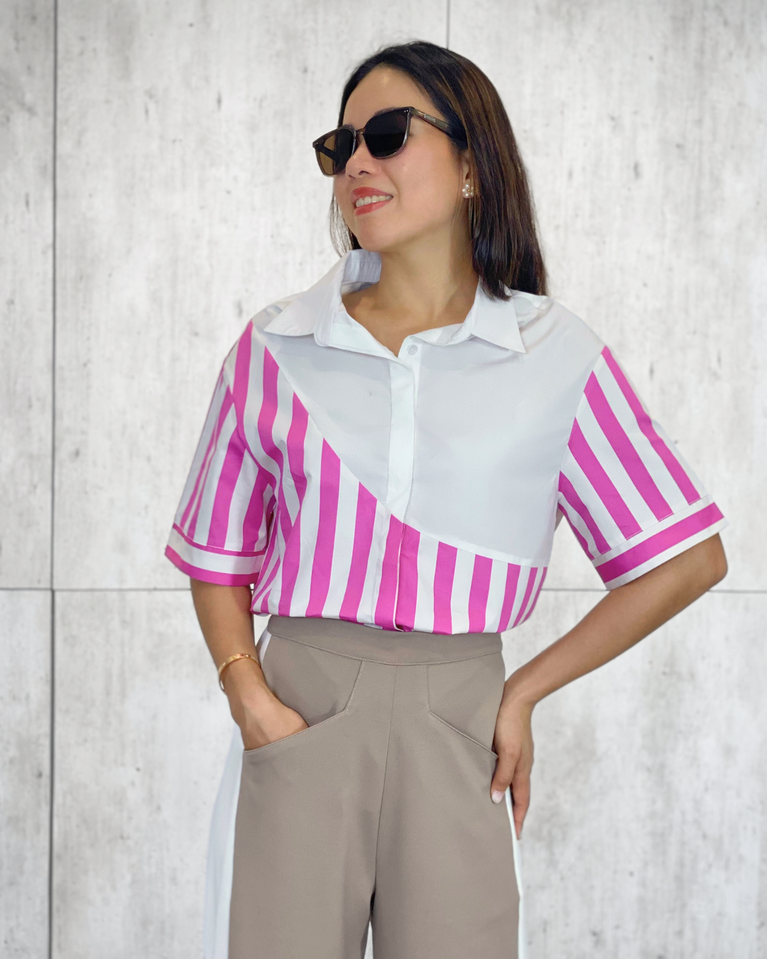 Introducing LOREN top, a reimagined classical polo designs with a geometric twist. We push the boundaries from your usual polo edit for an edgy yet sophisticated ensemble.